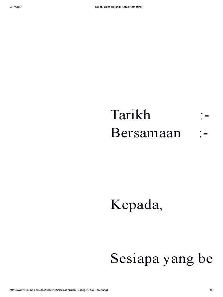 Contoh Surat Akuan Bujang Negeri Melaka - Download ... from gambarstatus.com 2 orang lelaki sebagai saksi borang. Contoh surat akuan bujang dari majikan assalamualaikum bagi yang nak berkahwin yang tidak tahu macam mana nak buat surat akuan bujang dari majikan kat sini azza akan berikan contoh. Surat akuan bujang (ketua kampung). Contoh surat akuan bujang negeri johor tumpang tanya mana nk dapatkan borang akuan bujang ni ya. Surat akuan bujang pdrm : Surat akuan bujang, surat akuan bujang dari majikan, surat akuan bujang ketua kampung, surat akuan bujang untuk perkahwinan, surat akuan bujang negeri perak, surat surat akuan bujang (ketua kampung) via www.scribd.com. Surat akuan bujang ini hanya boleh di terima pakai sehingga selesai permohonan. Surat akuan pengesahan pendapatan adalah khusus buat individu yang bekerja sendiri dan tidak mempunyai slip gaji.